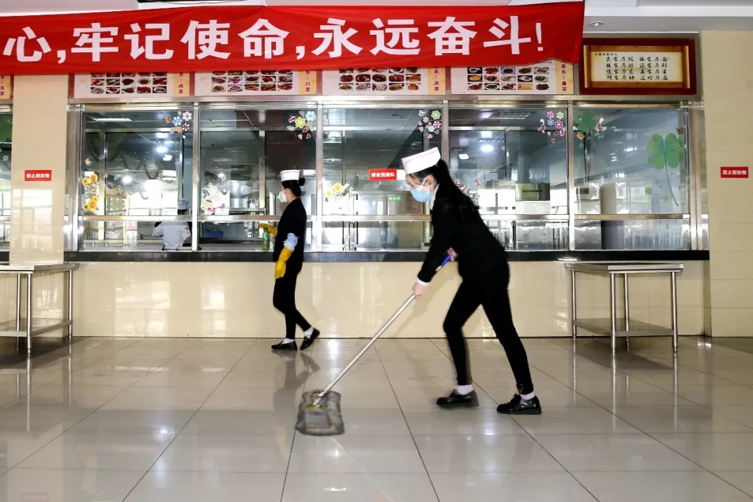 王宠、王海丰在青海铜业食堂检查清洁消毒情况