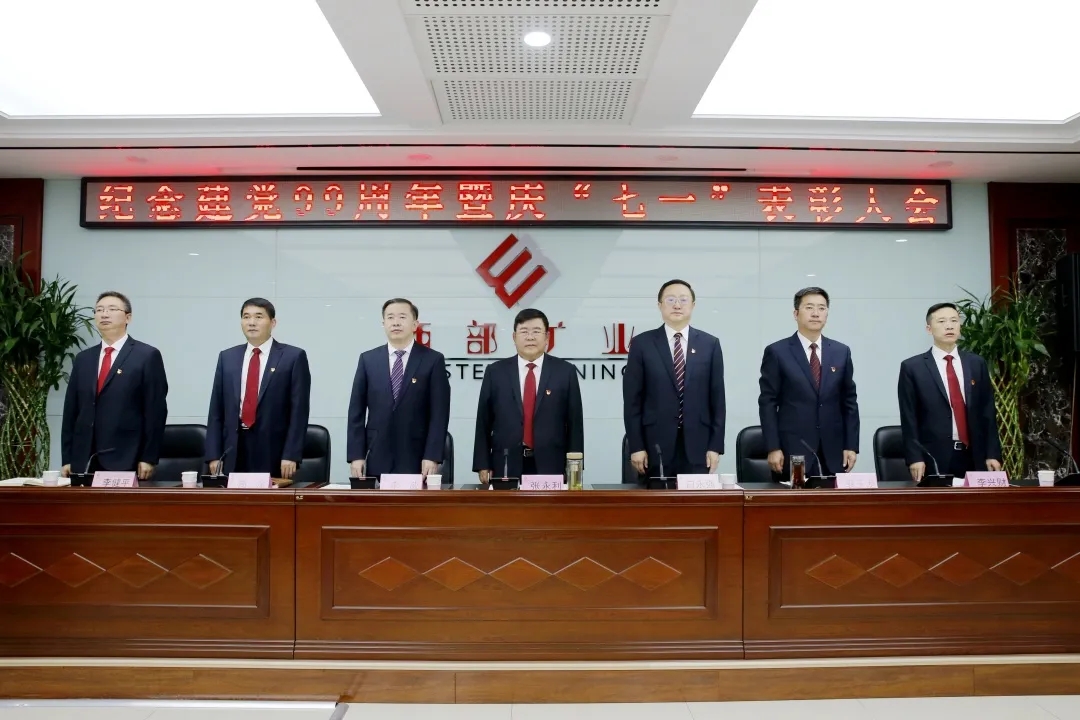 党委工作处讯  6月30日上午,集团公司党委召开纪念建党99周年暨庆“七一”表彰大会,激励和动员公司各级党组织、广大党员干部更好地发挥战斗堡垒和先锋模范作用,团结带领广大干部职工凝心聚力,深入推进“三大变革”,奋力开创西部矿业高质量发展新局面。集团公司党委书记、董事长张永利,集团公司党委副书记、总裁白永强参加,集团公司党委副书记、工会主席李威主持。