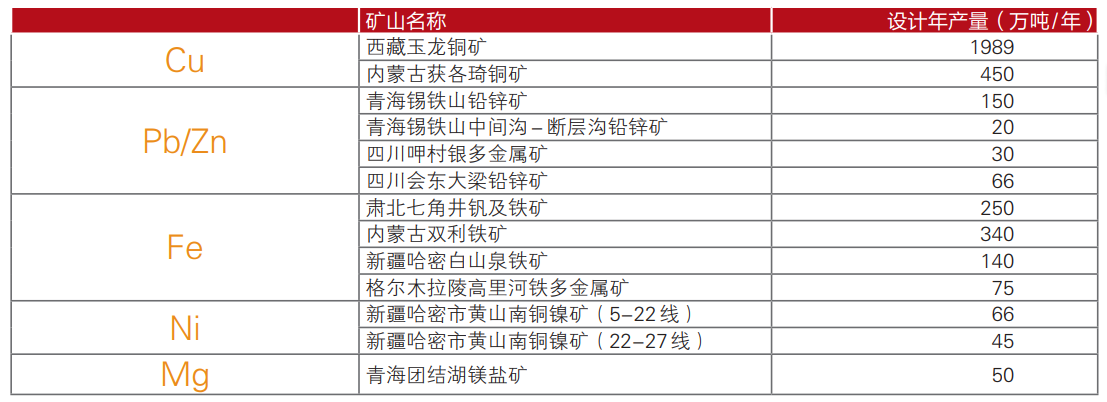 设计产量 :各矿山设计产量如下(以采矿权证载能力为依据)