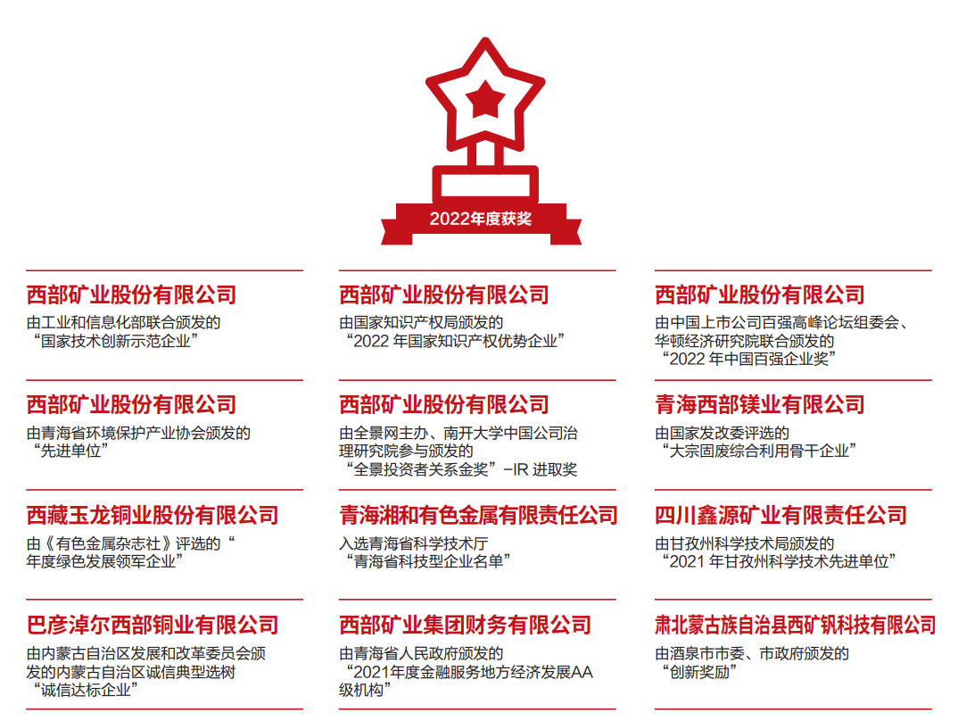lewin乐玩·(中国区)有限公司官网(下称“西部矿业”)由青海大柴旦锡铁山矿务局改制成立,总部位于青海省西宁市,2007年7月12日在上海证券交易所挂牌上市。在全国11个省、市、自治区拥有30余家(分)子公司和控股公司,业务范围涵盖矿山采选、有色冶炼、金融贸易、盐湖化工等领域。