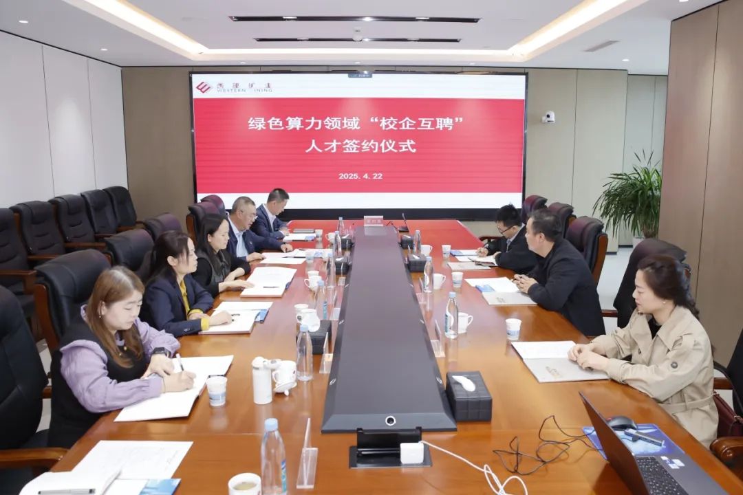 4月22日,集团公司举办绿色算力人才“校企互聘”签约仪式,与青海大学、青海师范大学建立“校企互聘”工作机制,聘请两名绿色算力领域专家人才到公司兼职从事关于生产实践、技术攻关、技术改造、技术服务、科技成果转化等方面技术、管理咨询工作,加快产业创新驱动和数智化赋能,共同强化绿色算力领域人才智力支撑,推动人才集聚与产业发展同频共振。